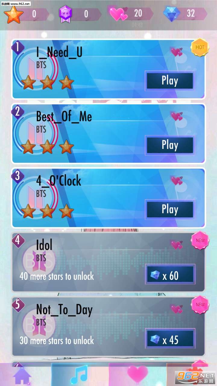 游戏中的不同曲目代表着不同的歌曲难度,主要是考验玩家的手速 ,在这里你还能根据自己的喜好,表演你偶像的曲目,游戏中还能收集宝石 ,解锁更多的关卡哦!