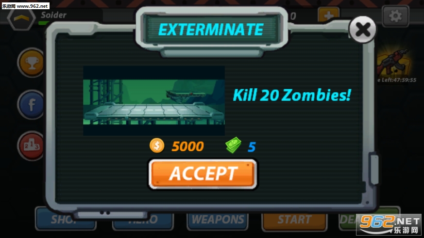 完成每一天的任务,然后你可以得到很多奖励升级或购买新武器!