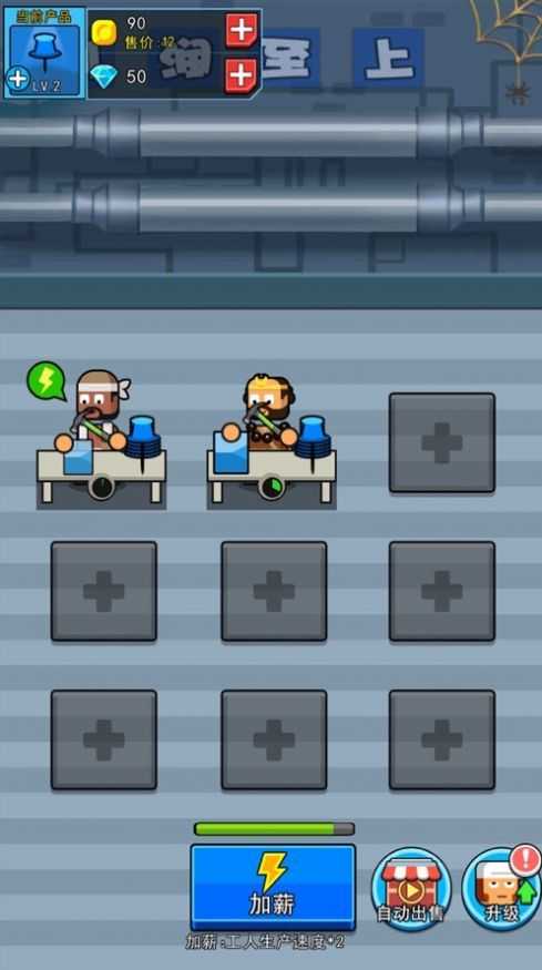 金币工厂2是一款能够模拟经营工厂的游戏。金币工厂2游戏里面玩家将开设工厂,招募人才,不断的生产产品,获得更多的游戏金币,从而不断获取游戏资源!赶紧下载游戏来经营好你的工厂,成为老板大亨!坐等收钱!