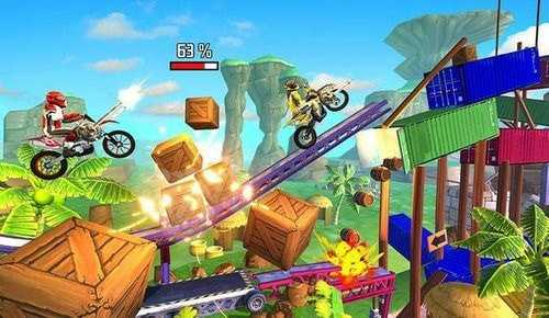 在精心设计的赛道上骑乘摩托,完成各种高难度动作,例如翘头行驶、飞跃跳台以及空中翻滚等精彩特技;