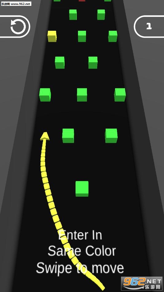 滑动蛇以切换颜色撞击相同颜色的障碍物顺利滑行 ,一旦碰到不同颜色的障碍物,则失败!