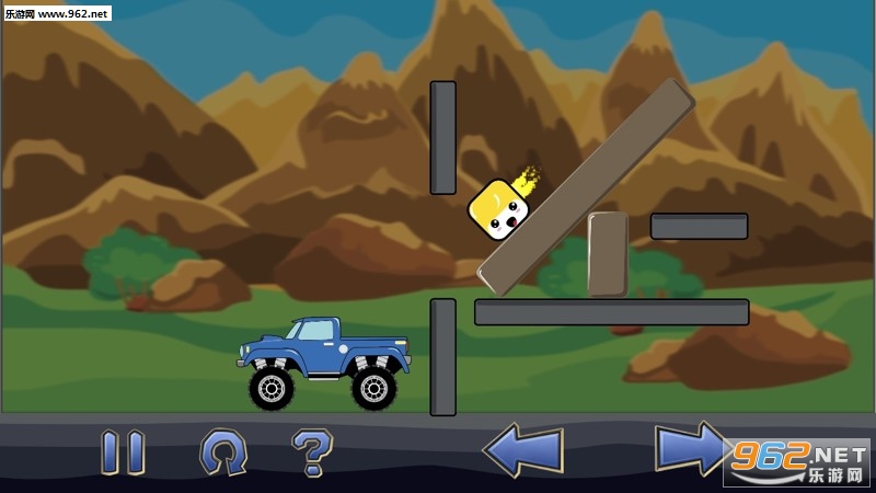 现在有一块方形的小石头它非常不开心,因为它想去卡车的车厢中玩耍,你需要想办法让它进入车厢,可以使用炸弹来帮助你,通关的方式不止一种,你可以不断做新的尝试,只要让小石头进入车厢,它就会重新开心起来。