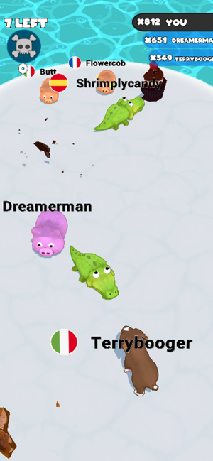 2、通过不断进食让自己逐渐变大,获得更强的竞争力,甚至可以直接将体型较小的对手甩出竞技场。