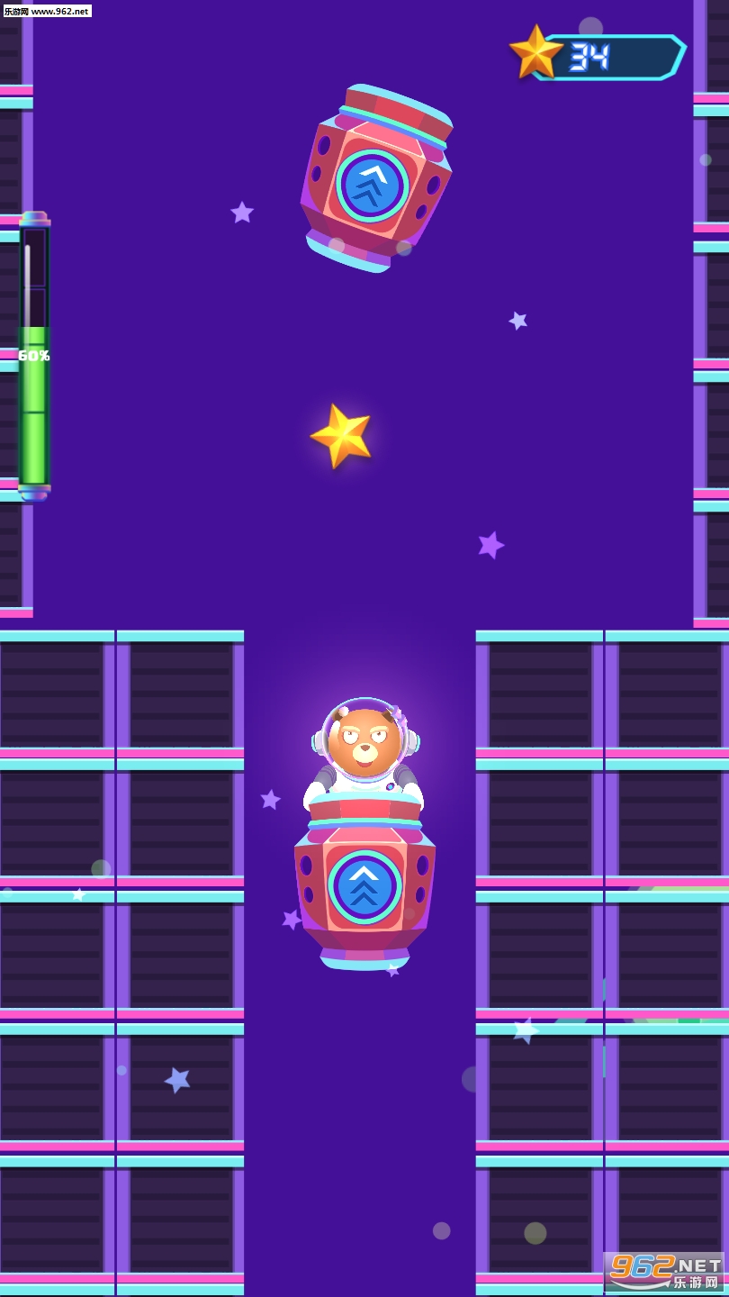 《Amo Rush》是一款画风十分可爱的休闲跳跃点击类手游。游戏采用了可爱的卡通画面和简单的点击式操作。玩家将控制宇航员小熊,每点击一次就去往另一个太空舱,并收集星星,还需要躲避不断来回移动的障碍物,游戏是计时的。