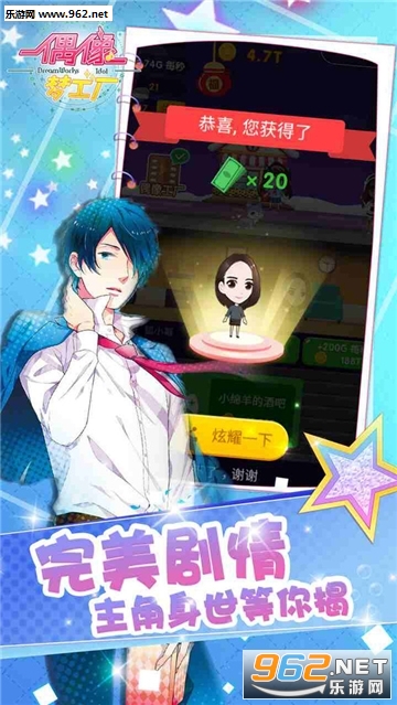 偶像梦工厂是一款模拟经营、明星养成类游戏。游戏中,玩家将扮演经纪人,养成当下各明星红人,更能安排艺人拍电影!完美的游戏剧情,每一个明星的背后都有一段辛酸或者不为人知的奋斗历程;揭开他们的身世之谜。海量的明星偶像角色,融入了大家喜欢的二次元风格。每一位偶像都是精心制作,为他们配音。适合所有的玩家上手体验!