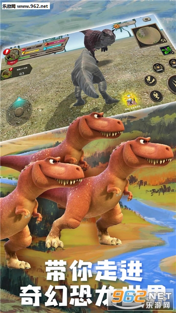 在令人着迷的侏罗纪世界中,你将遇到许许多多特色鲜明的恐龙、鳄鱼、蜥蜴等生物,你可以与之搏斗,厮杀,将其征服。通过狩猎他们来维持自己霸王龙的生命和状态,并且来提升自己的等级和能力。更有趣的地方是,在这里你还可以找到你的迷你霸王龙伙伴一起冒险!