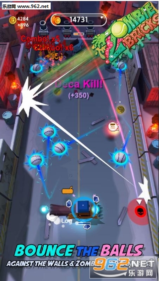 各种僵尸正在接近你的英雄正在保护的最后一道防线。他们发射大炮甚至将自己的身体部位扔到你身上并自行爆炸。通过向左和向右移动来躲避那些僵尸攻击并向它们击球以摧毁它们。