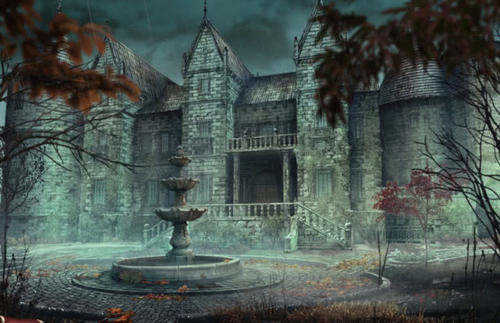 眼前出现一座弥漫着诡异气息的鬼屋,气氛压抑得让人喘不过气来。