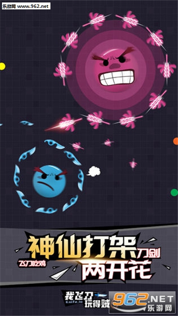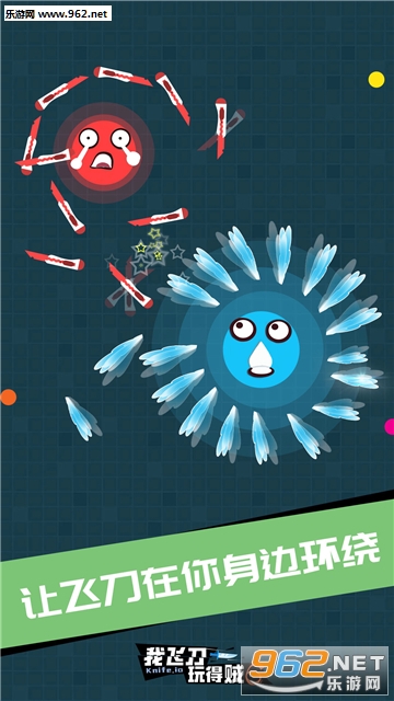 《我飞刀玩得贼6》是一款创新玩法的io类游戏。玩家需要通过对一大堆飞刀的熟练操控来进行混战,独创的龟缩防御机制(俗称王八状态),让你能轻松秀死对手,刀剑两开花!