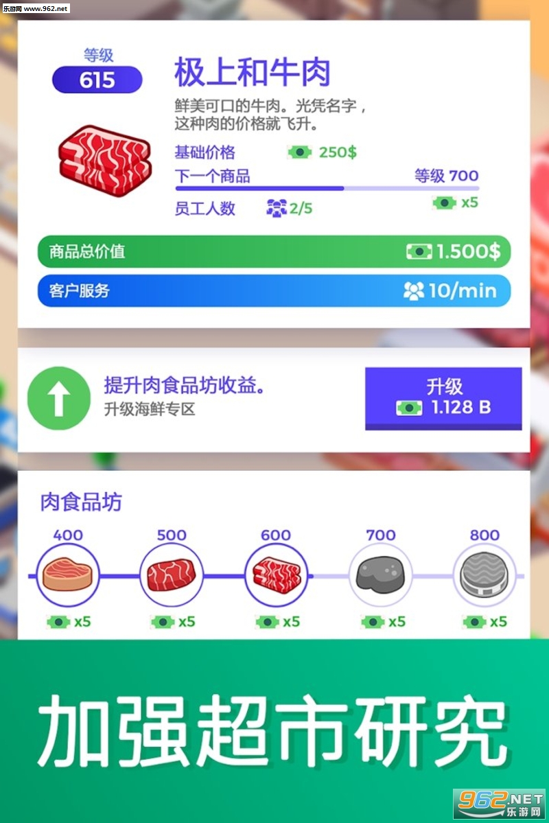 从小型超市起步,将它扩建成大型超市。增建面包坊,出售果蔬,供应优质鱼类和肉类。开设自有香水专区和电子产品专区。让顾客用各种商品装满自己的购物车!