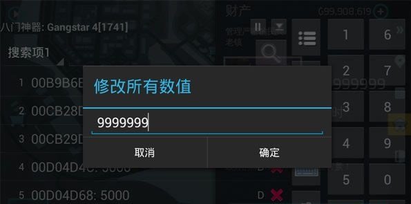 4、选择数据控制,修改所有数值,输入你想要的金币数量,例如9999999(不能超过21亿,否则会变负数)