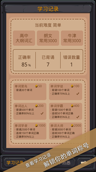 单词城堡精心筛选当前最常用的以及各类考试中涉及的英语单词,并且将它们划分为三个等级,单词来源均基于当前最新的考纲文件。用户可以轻松地找到适合自己的词库,并开始学习。