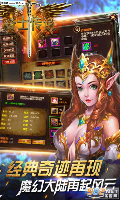 不错的魔幻即时战斗手游,玩家可以收集炫酷的翅膀强力的装备等来提高战斗力,参与团战公会战等,小编带来的是骑士传说bt版,上线送满级vip,送各种福利。