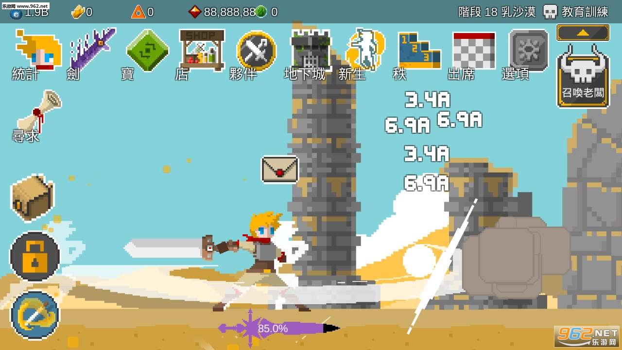 自我剑中文版(Ego Sword)属于那种相当棒的休闲放置类手游,你将扮演用剑的勇士在广袤无垠的草原上穿梭,只需点击便可获得大量的收益哦,喜欢挂机手游/收菜游戏的玩家们不妨下载一试,绝对不错的像素养老游戏!