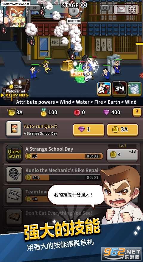 《热血高校国夫君回归安卓版》是一款放置类的RPG冒险游戏。经典的卡通画风,玩家在游戏中自由的进行冒险收集,挑战创新的副本获取丰厚的奖励。游戏内的技能种类丰富,各种资源应有尽有,给你带来最刺激的暴走战斗体验。喜欢的话就快来下载试玩吧!