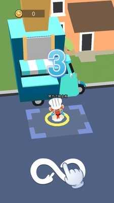 进入游戏后,谁是大胃王会为每位玩家随机匹配对手。接下来,你需要通过滑动屏幕来控制厨师角色,在场景中寻找并收集食材,并将它们安全运送到自己的餐车中。