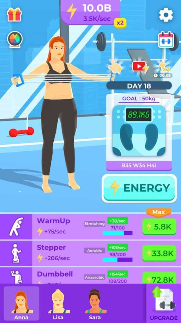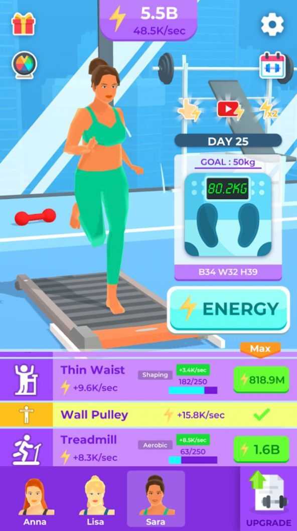 多种健身角色供你选择,完成任务,和他们一起发家致富;
