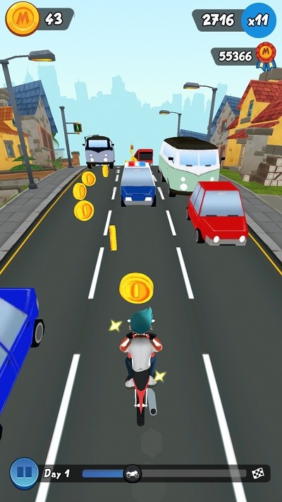滑动手指向左,向右,向上或向下,以避免在这无尽的驾驶摩托车比赛的障碍。收集硬币和使用他们购买功能强大的升级和电源UPS,以帮助完成每项任务.
