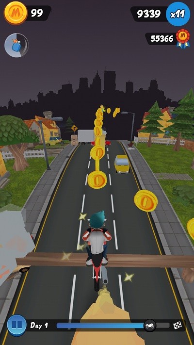 2.全新的跑酷体验开始,玩家可以骑着自己心爱的小摩托车在地图上展开跑酷。