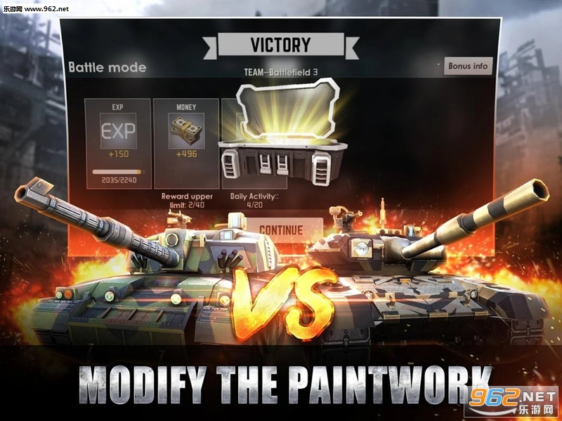 这是一款3D坦克实时对战策略游戏,数10辆坦克让你在实时对战中大显身手。在战斗中你要运用一些策略,是躲避、或是疾驰还是精准的瞄准与射击击败你的敌人,最终成为战场上的英雄。