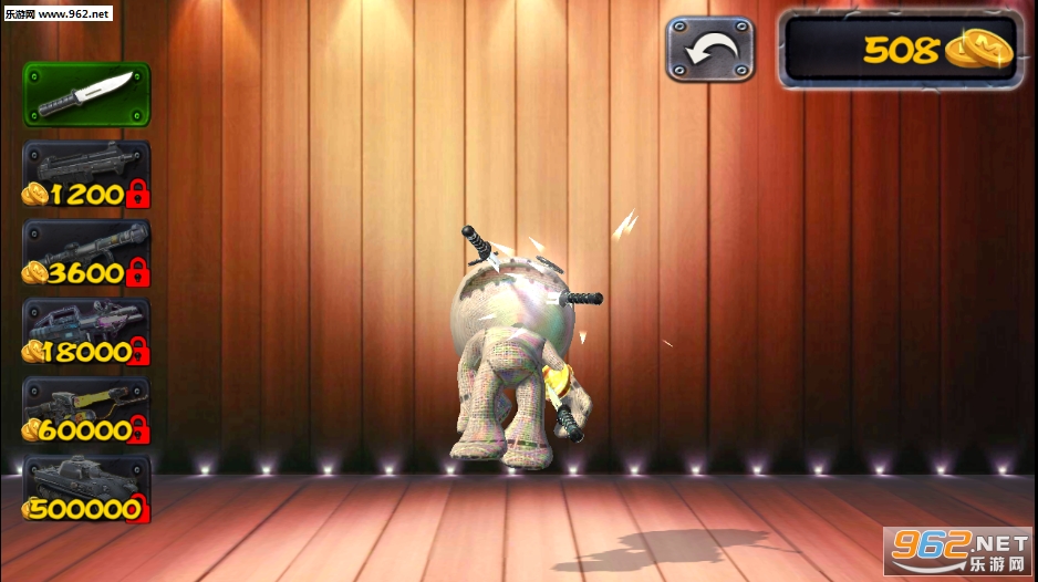 任务极度简单,动动手指,用各种武器打击木偶人就可以赚取金币。