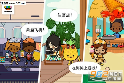 让每一天都成为假日冒险!体验前往机场赶飞机的刺激。在酒店的床上跳跃。在海滩挖宝。创造想要的所有假日乐趣,尽在Toca Life: Vacation!