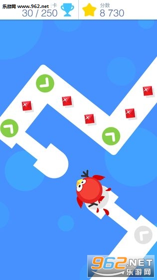 《点点冲刺》是一款好玩上瘾的点击类手游。游戏画面清爽简洁,玩家将操纵一只可爱的小鸡在蜿蜒曲折的跑道上奔跑,每到拐角和空白处,玩家需要点击屏幕使小鸡转弯或跳跃,防止从跑道上掉下去,非常考验玩家的反应能力哦!