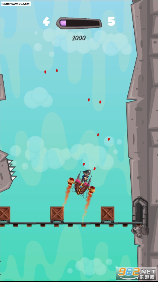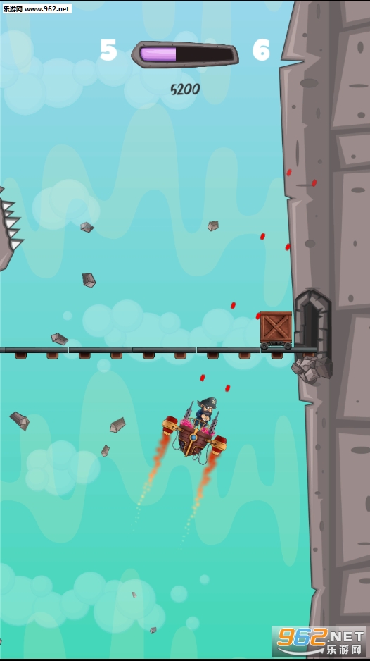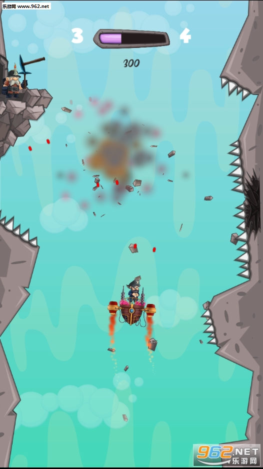 崛起海盗,崛起!升起天空,用你手工制作的船上的最有价值的钻石逃跑,发射火箭来移动。但这很危险。在狭窄的峡谷中航行您的船只,疯狂的矿工们会扔掉他们的工具阻止您到达顶部。向左和向右轻按以转动并点按两个以上升。把你的魔法枪对准矿工和障碍物去彻底,但不要太靠近!