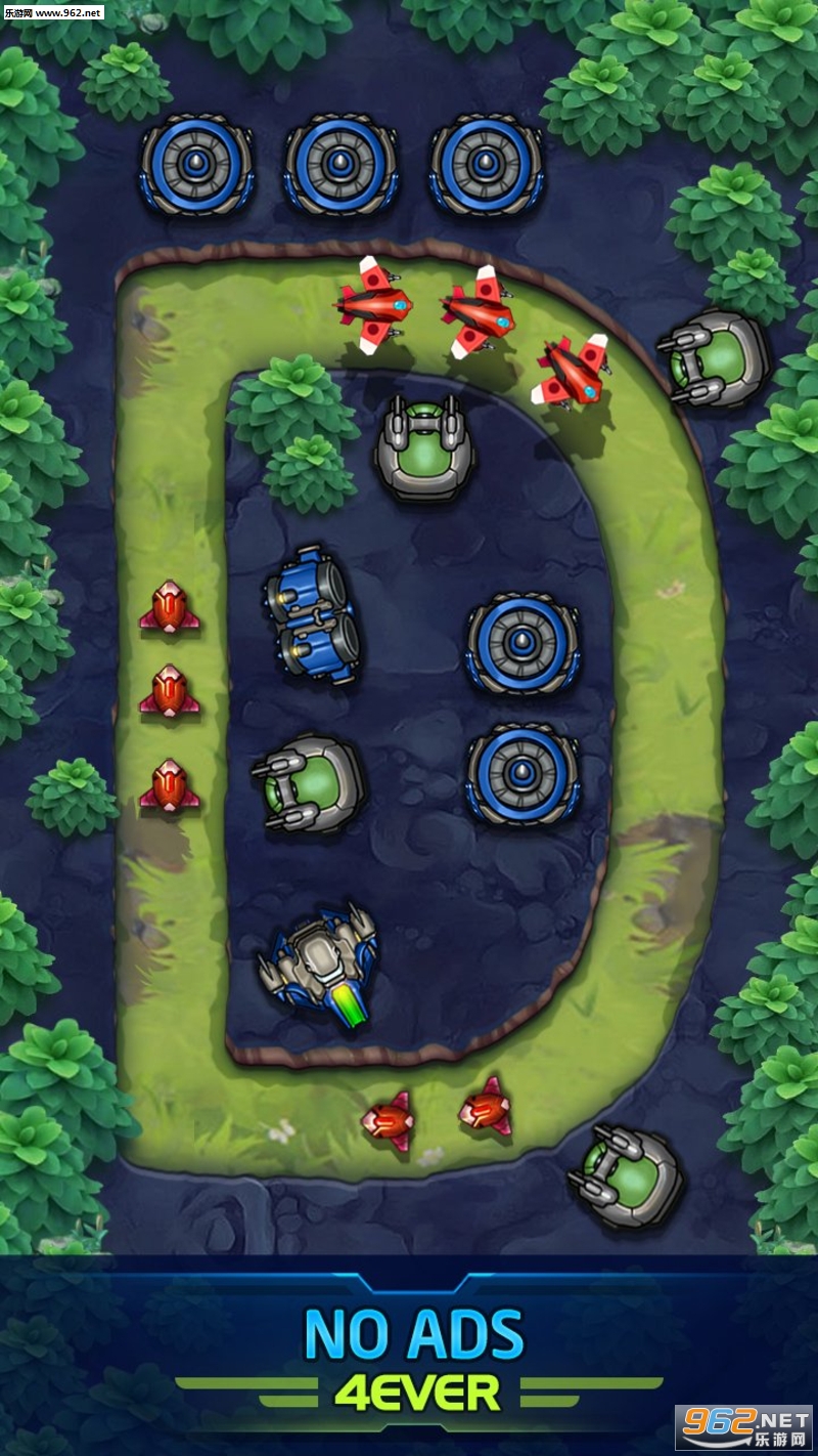 + 8种类型的塔,枪机,慢塔,炮塔,导弹塔,激光塔,双塔,金机。每座塔楼都有4个升级级别。