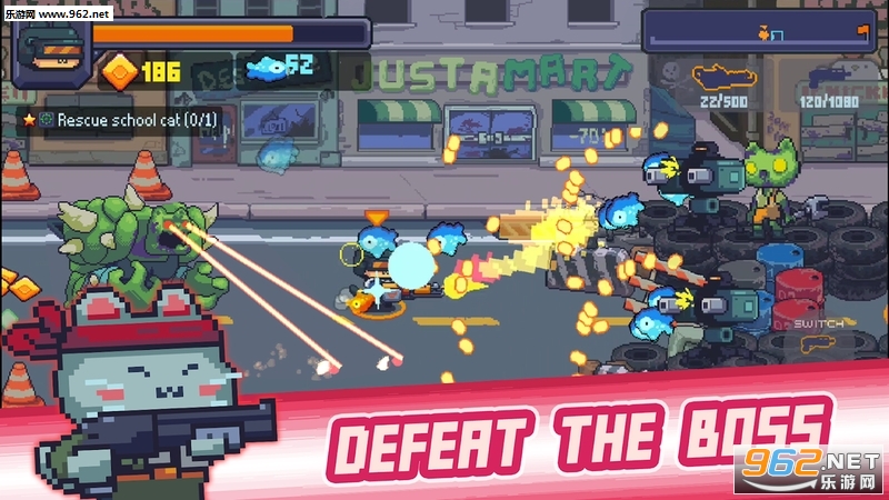 《猫枪超级力量官方版》是一款十分好玩有趣的像素风格横版动作射击类游戏。在游戏中玩家将收集各种各样的喵星人来抵御邪恶的僵尸军团的进攻,游戏中有着上百种的武器可供使用,你需要合理的进行阵容的搭配才能够轻松的通关。感兴趣的小伙伴儿赶快来下载试试吧!