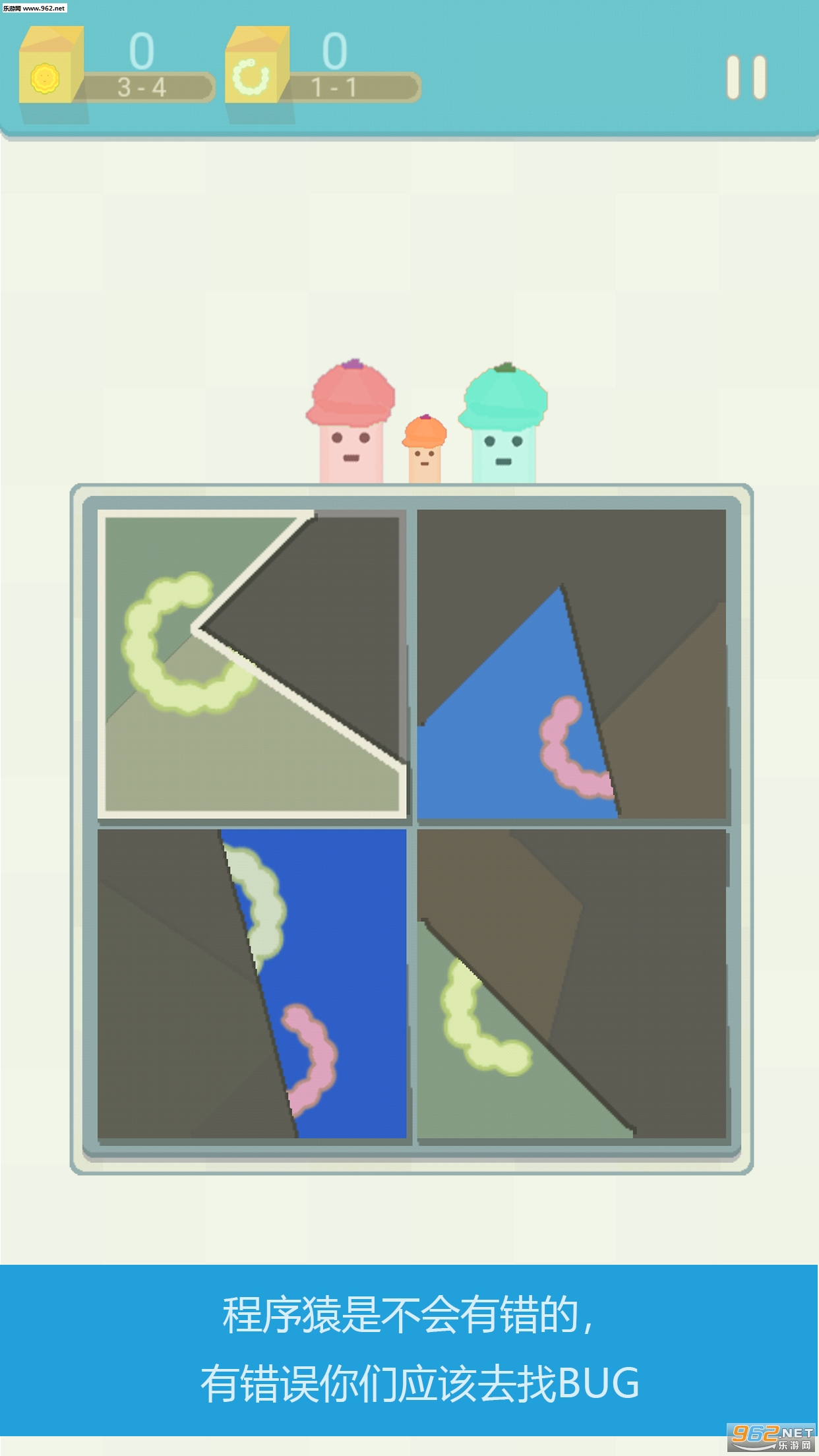玩家只需要通过翻转或移动分布在四个格子的碎片,拼接出盒子的盖子或拼接出完整的Bug。但由于碎片之间的耦合关系,所以这个过程并不简单,您的每一步翻转移动都要有技巧。