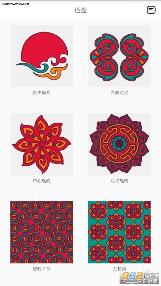 -程序中提供了7种不同的绘画形式,有自由模式、左右对称对称、中心对称、对称旋转和平铺的方式,将万花筒的原理呈现于您的每一个线条,形成完全不一样的图案,每一笔落下都会给您带来不同的惊喜.
