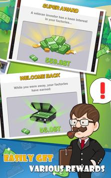 闲置挂机的玩法让这款游戏充满无穷趣味,游戏玩法主要为点击模式,玩家需要不断完成各种副本任务,解锁更多的工厂,这样能更快扩大经营范围,赚取佣金。通过最简单的操作“点击器”,Mega Factory是最容易上瘾的闲置游戏,结合了闲置的工厂游戏和点击游戏以及点按和点击游戏!自动化机器,升级工厂,收集更多闲置现金,成为现金大亨和闲置的工厂大亨和闲置的商业工厂大亨!不断地点击工厂里的机器进行生产产品,每次生产的产品到达一定数量就能够获得钞票。在游戏中玩家们升级机器、升级仓库,而且还要招揽更多的投资者,扩大业务。花费足够多的金币前往商城购买各种各样的加工材料来生产产品。