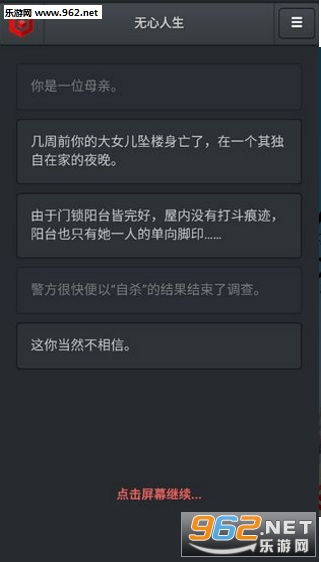 《无心人生》是一款主打剧情玩法的文字冒险手游,游戏的一开始就会有一个剧情设定,而你将会在死去女儿的衣物中发现奇怪的事情,进一步的去探索真相。快来游戏中解开种种的谜题吧!