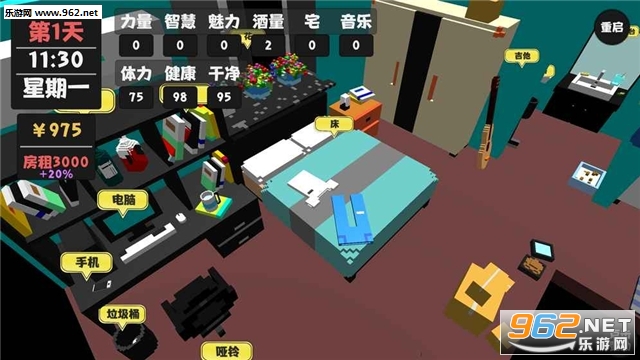 1、像素风格的画面相当不错,游戏的细节做的也很好,模拟了一个真实而孤独的城市青年生活;