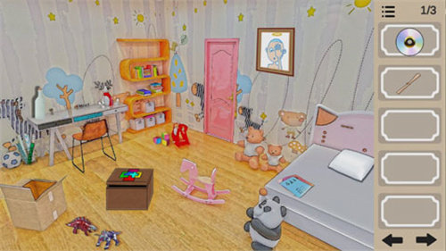 熊猫:熊猫的双眼与鼻子可以改变状态,请从场景中的挂画和涂鸦中获取线索,鼻子是绿色的,眼睛是向下的,可以获得锤子和积木。