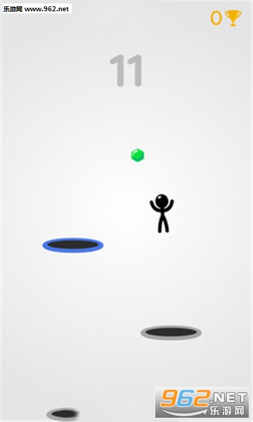 2、通过手指点击来控制或火柴人跳跃到另一个蹦床上,同时还要在空中抓住更多的宝石。