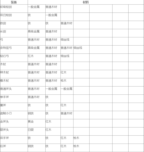 工匠物语2装备合成配方大全