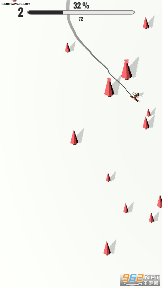2、简洁风格的画面打造,小心雪地上的障碍物,利用滑雪技巧不断前行;