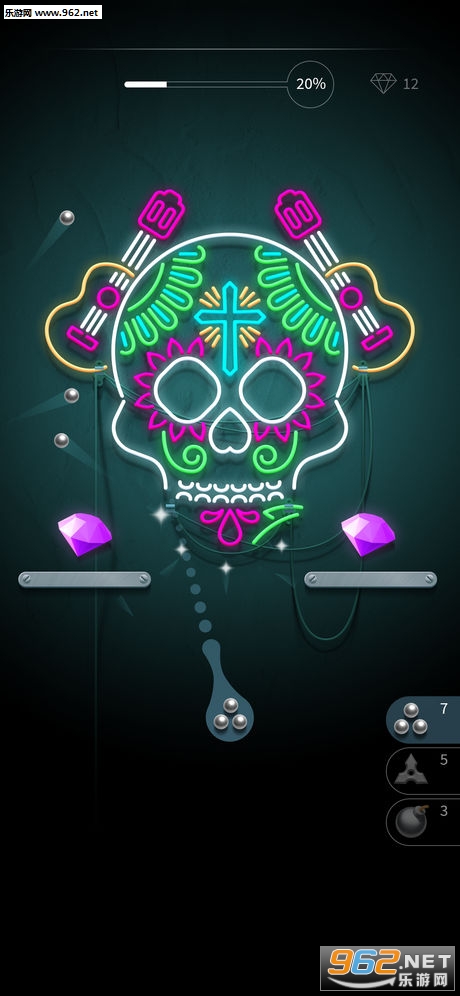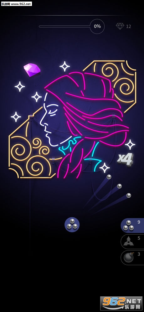 《粉碎霓虹Hit the Light》是一款霓虹灯风格的弹射类手游。游戏中玩家的目的是使用有限的道具将霓虹灯全部击碎。游戏中的每一个关卡中都有一个特殊图案的霓虹灯,你可以使用弹珠、飞镖和炸弹将它们击碎,只有全部击碎才能进入下一关哦~