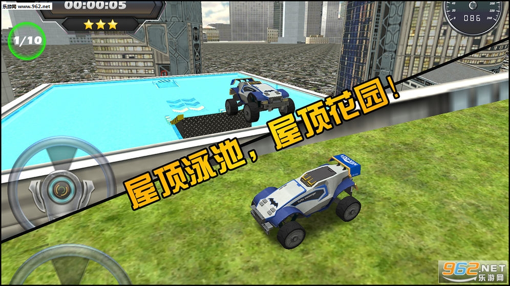 《屋顶飞跃》这是一款以飞跃为主题的3D汽车游戏。