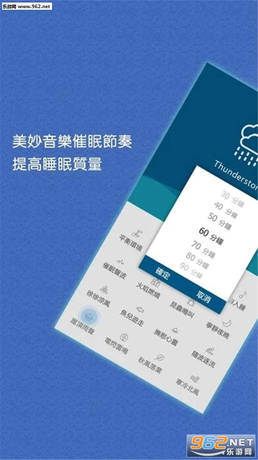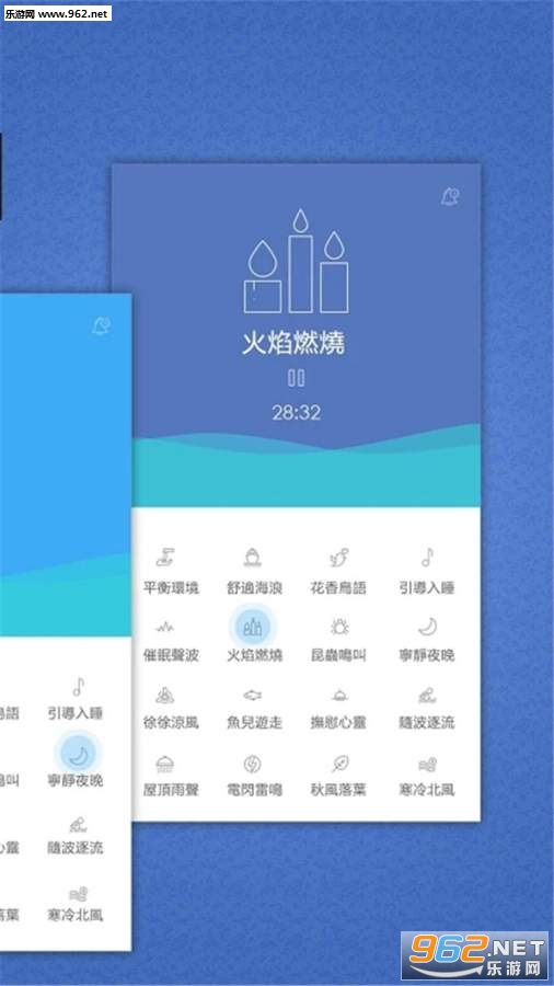 内置免费,高品质的音乐,波浪的声音,流动的声音,滴水的声音,雷暴,篝火声,昆虫声,青蛙,鸟声,摇篮曲,白噪声等。