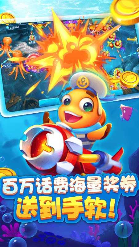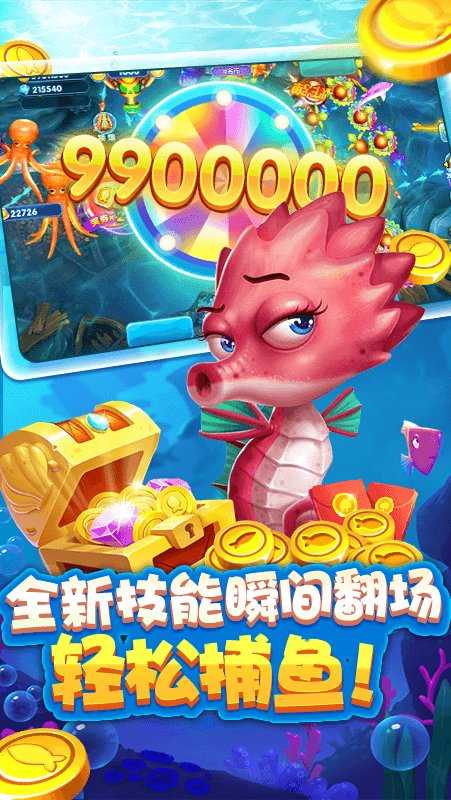 4、还原逼真海底生态,自由探索捕鱼场景,挑战强力BOSS赢取高额积分。