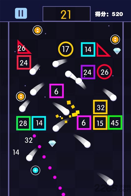 2.利用弹珠以合理的角度消除不断下降的数字方块