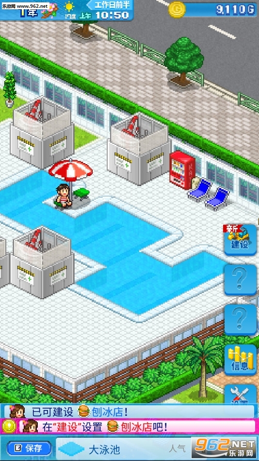 一款像素风格类的模拟经营游戏,在这款游戏中,你将要去经营自己的水上乐园,在这里建造你的度假村的设施,感受到度假村的氛围,喜欢的小伙伴不要错过哦!