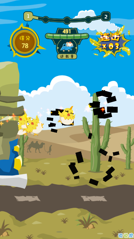 1、把屏幕上所有的小鸡都成功划掉即为过关,看似容易实则暗藏玄机;