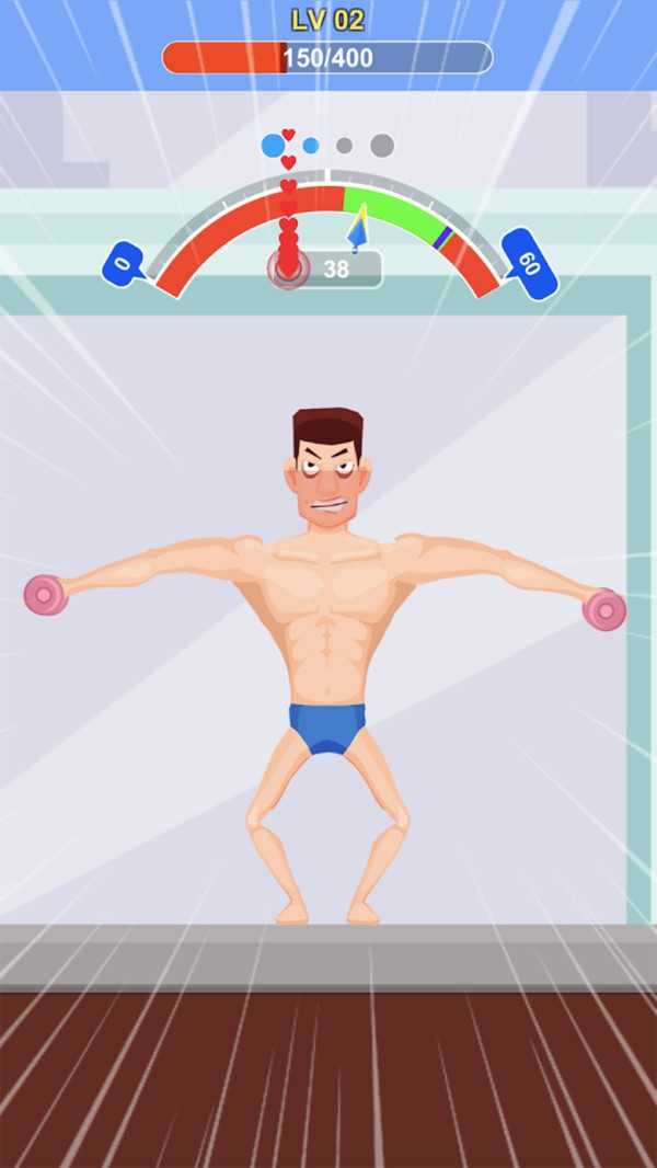 2、背景音效让人振奋、激情。游戏通过举重测试度来衡量是否能过关!