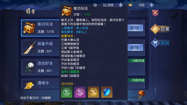 此外,还有闭关行和幻月洞府等日常副本。闭关行的任务较为简单,自动战斗即可通关并获得丰富经验。幻月洞府每层通关后都会给予经验奖励,建议提升自身实力后再挑战。每天仅有一次机会挑战幻月洞府,V8用户可额外获得一次机会。