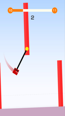 《摇摆吊索方块手游》是一款方块躲避闯关游戏,游戏的画面清新简约,赏心悦目,游戏中玩家点击游戏画面,控制你的方块进行甩动,从一个柱子上甩到另一个柱子上,你需要预估好柱子之间的距离,让你的方块能准确的粘到柱子上。