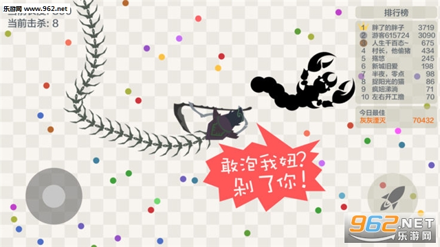 《小蛇斗蜈蚣之五毒大作战官方版》这是一款贪吃蛇玩法的休闲对战手游。玩家要操作角色,吃取食物不断成长,通过走位击杀对手,争取成为最终的冠军。游戏上手容易,感兴趣的玩家可以下载体验!